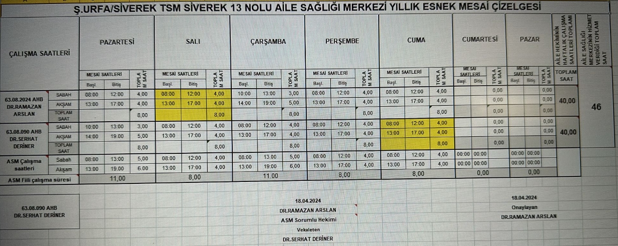 Çalışma Saatlerimiz